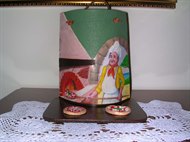 Tegola pizzeria in terracotta, legno e pasta modellabile. Decoupage pittorico h. cm. 22